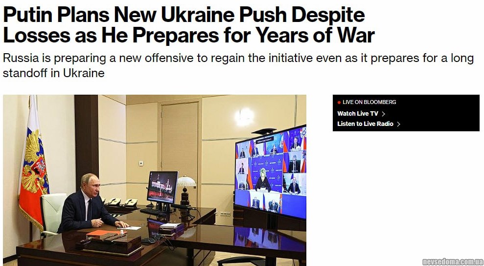 - путин, несмотря на огромные потери, готовит новое наступление в Украине, — Вloomberg.