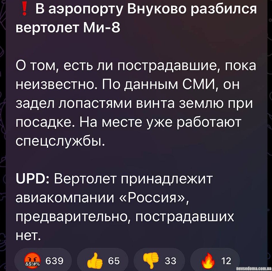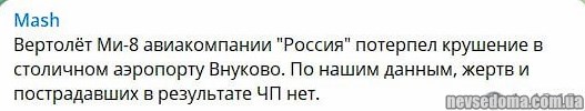 - В кацапском аэропорту Внуково потерпел крушение вертолёт Ми-8, — рашаСМИ.
