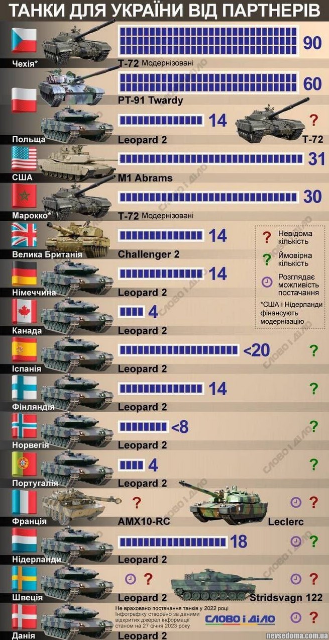 - Кто-то подбил планы по поставкам западных танков Украине. Пока получается 321 танк.