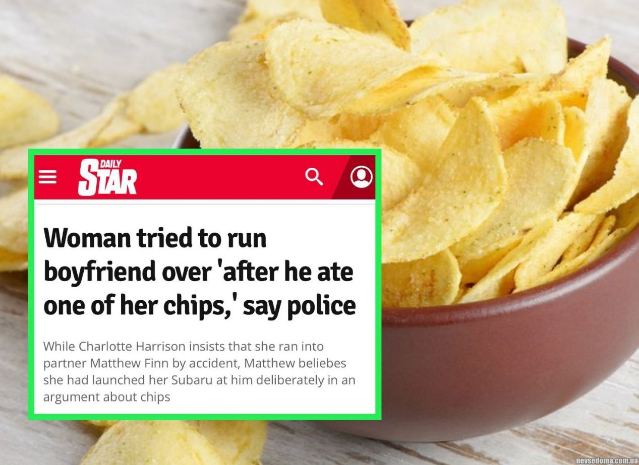 - Австралийская женщина сбила своего парня за то, что тот съел последние чипсы.