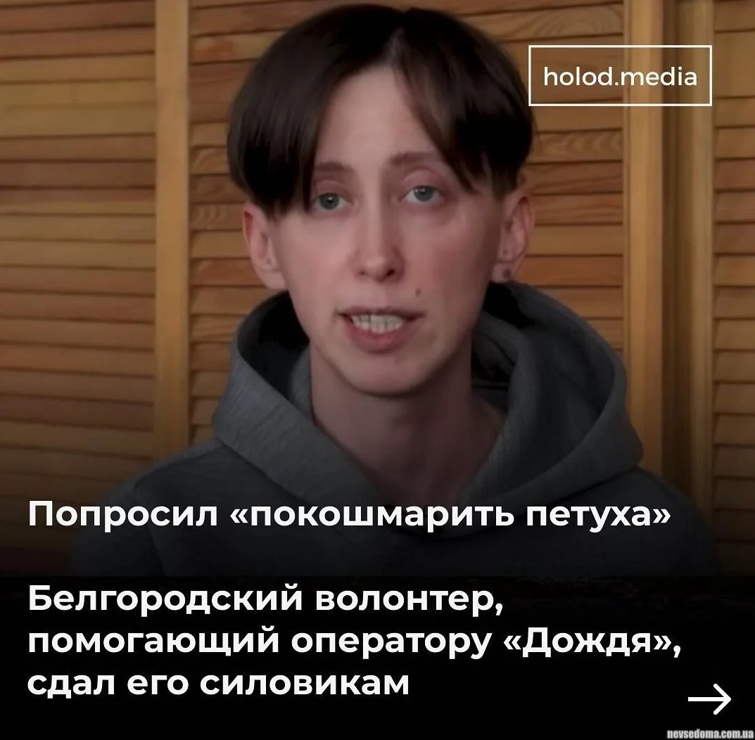 - В Белгородской области волонтер, помогавший сотруднику «Дождя», сдал его силовикам. "Холод"