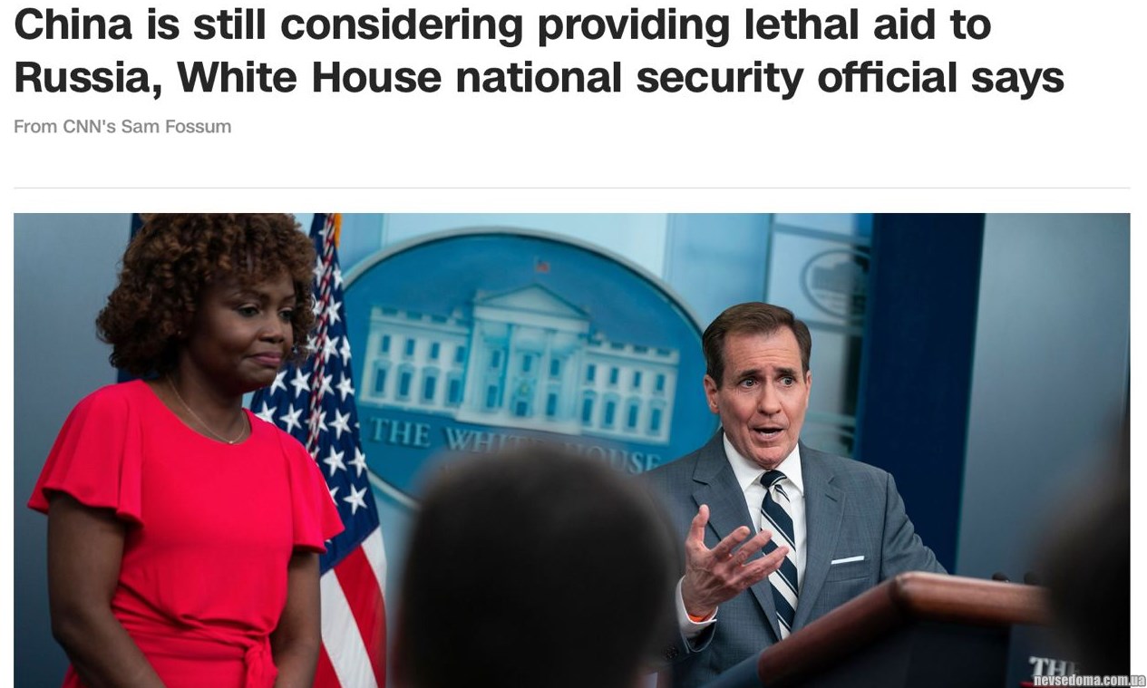 Кирби отметил (https://edition.cnn.com/europe/live-news/russia-ukraine-war-news-03-3-23/index.html), что в администрации Байдена, до сих пор не верят в то, что «Китай принял решение двигаться вперед» и снял этот вопрос с обсуждения.