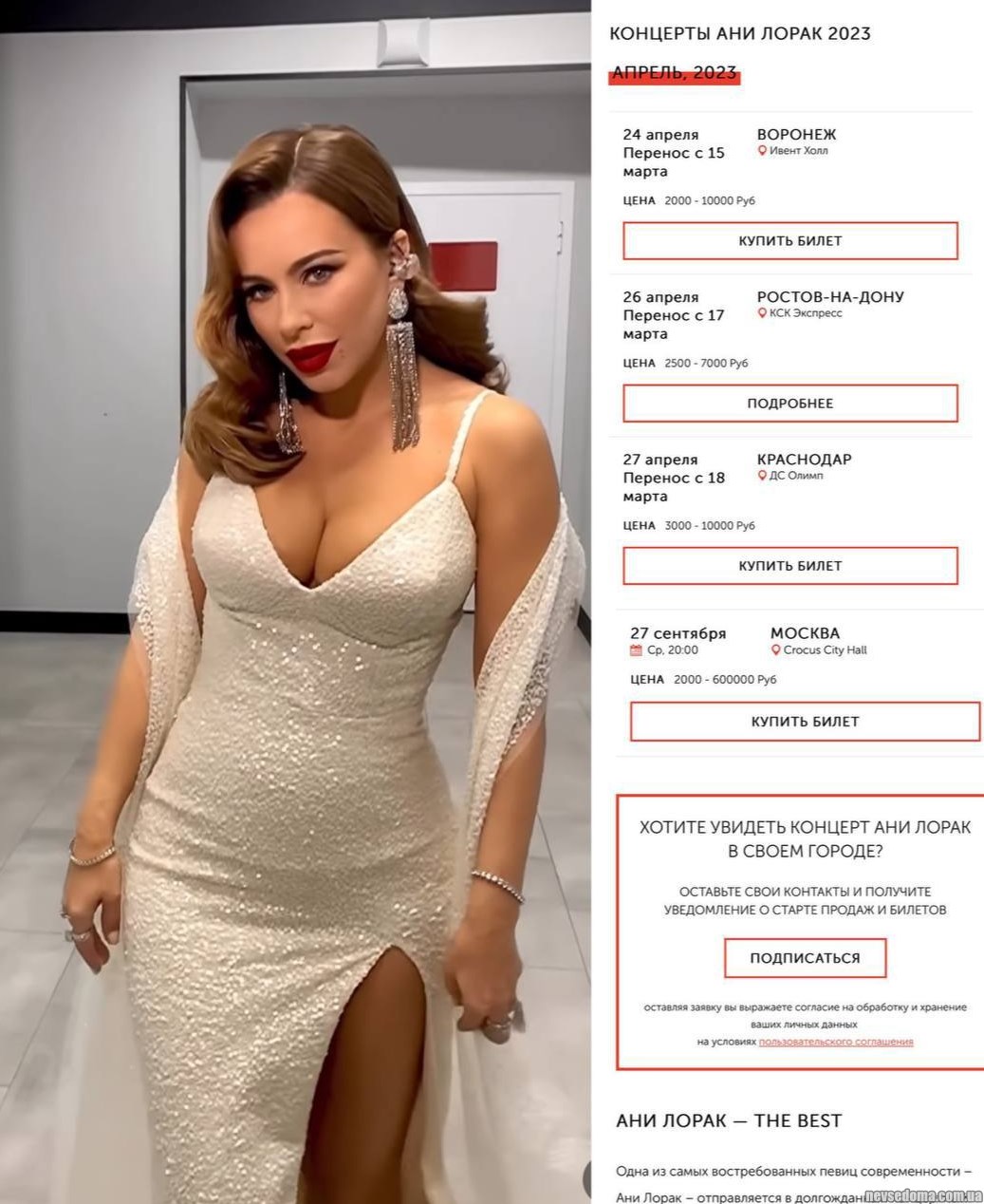 Ани Лорак отправляется в тур по России.