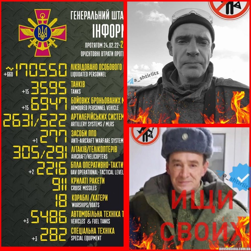 Всего с начала вторжения в Украину потери РФ достигли 169 890 рашистов