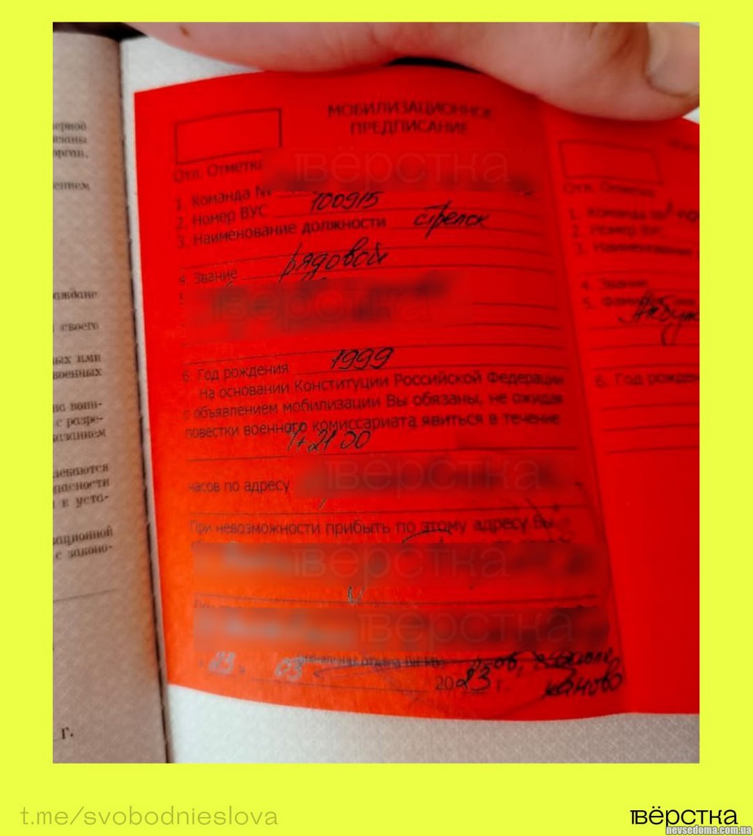 - Российские государственные и частные предприятия начали собирать военные билеты сотрудников под предлогами «оформления брони» и «сверки данных». В некоторых случаях в документ вклеивают мобилизационные предписания