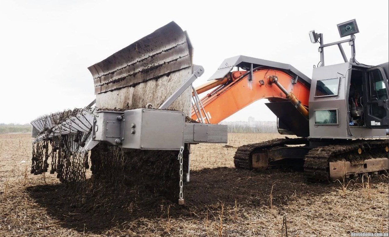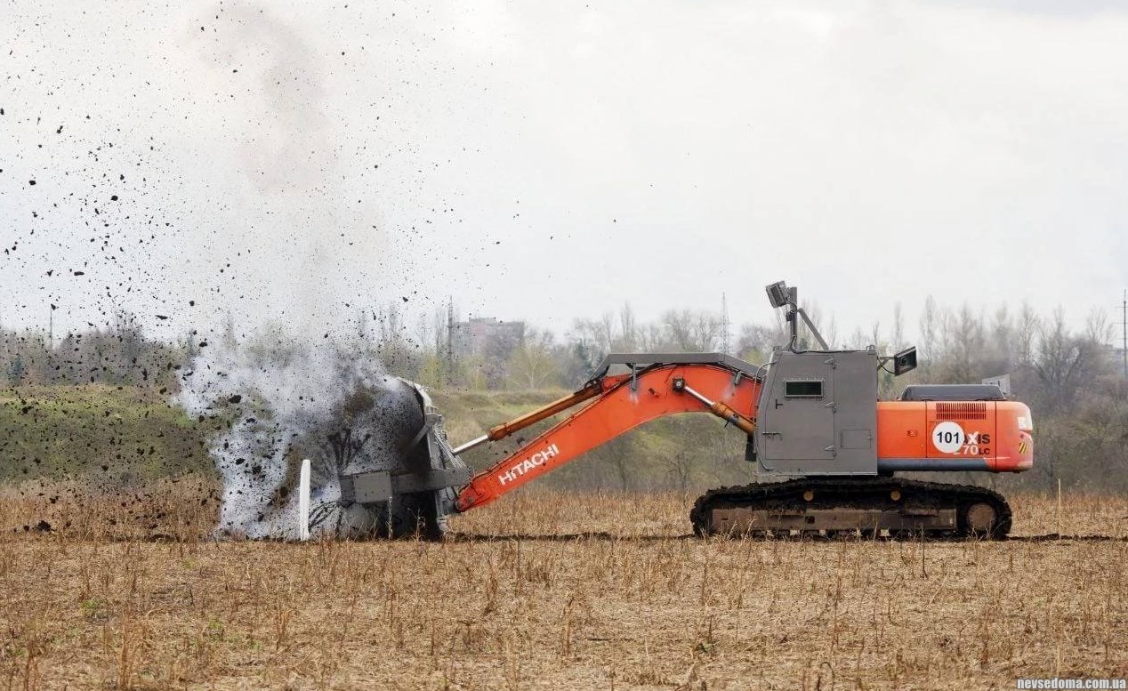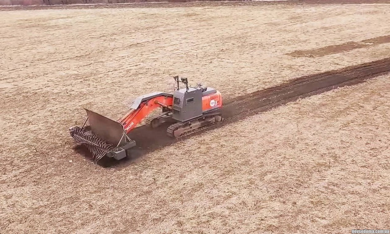 - Украинская машина разминирования на базе экскаватора Hitachi с бронированной кабиной