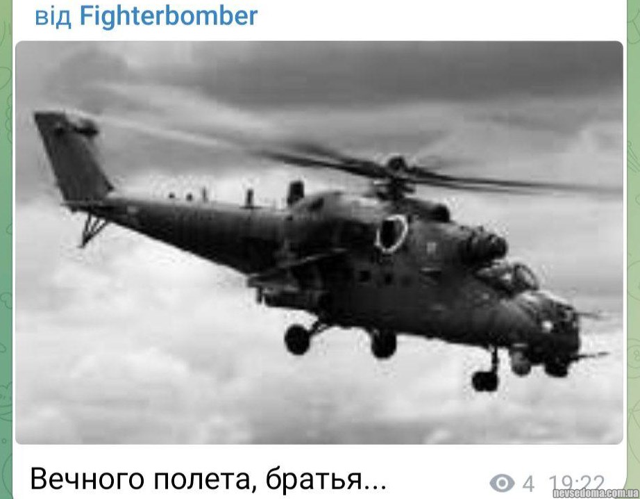 - Над Украиной сбит еще один российский ударный вертолет Ми-35, экипаж погиб.