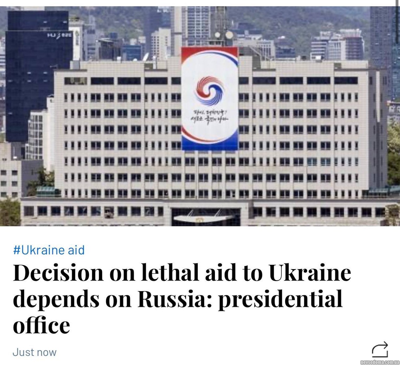 - Сеул не поставляет помощь Украине, поскольку заинтересован в поддержании стабильных отношений с РФ, — Yonhap.