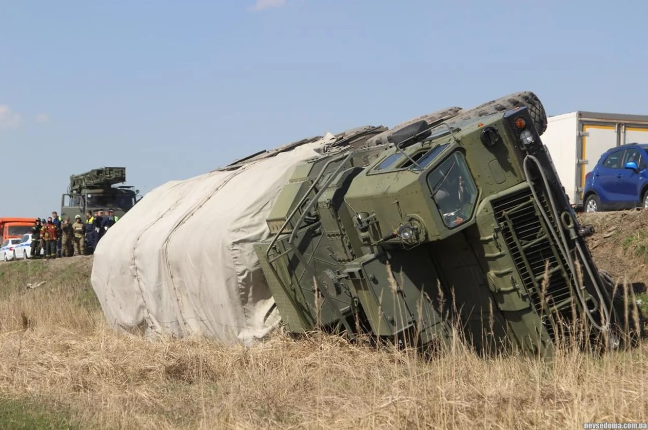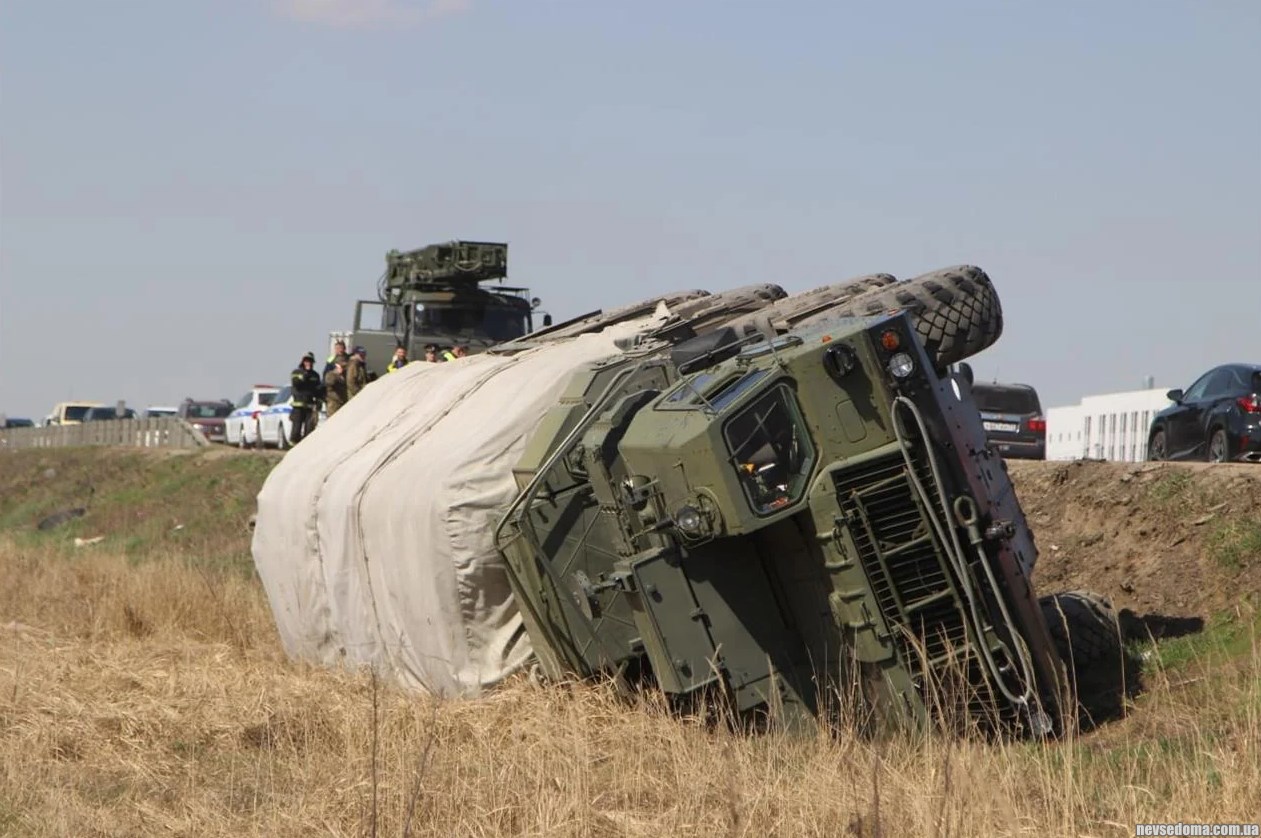 В четверг, 20 апреля, возле Тулы на автотрассе во временно оккупированный Крым, в районе села Прудное, во время движения перевернулся зенитно-ракетный комплекс С-400.