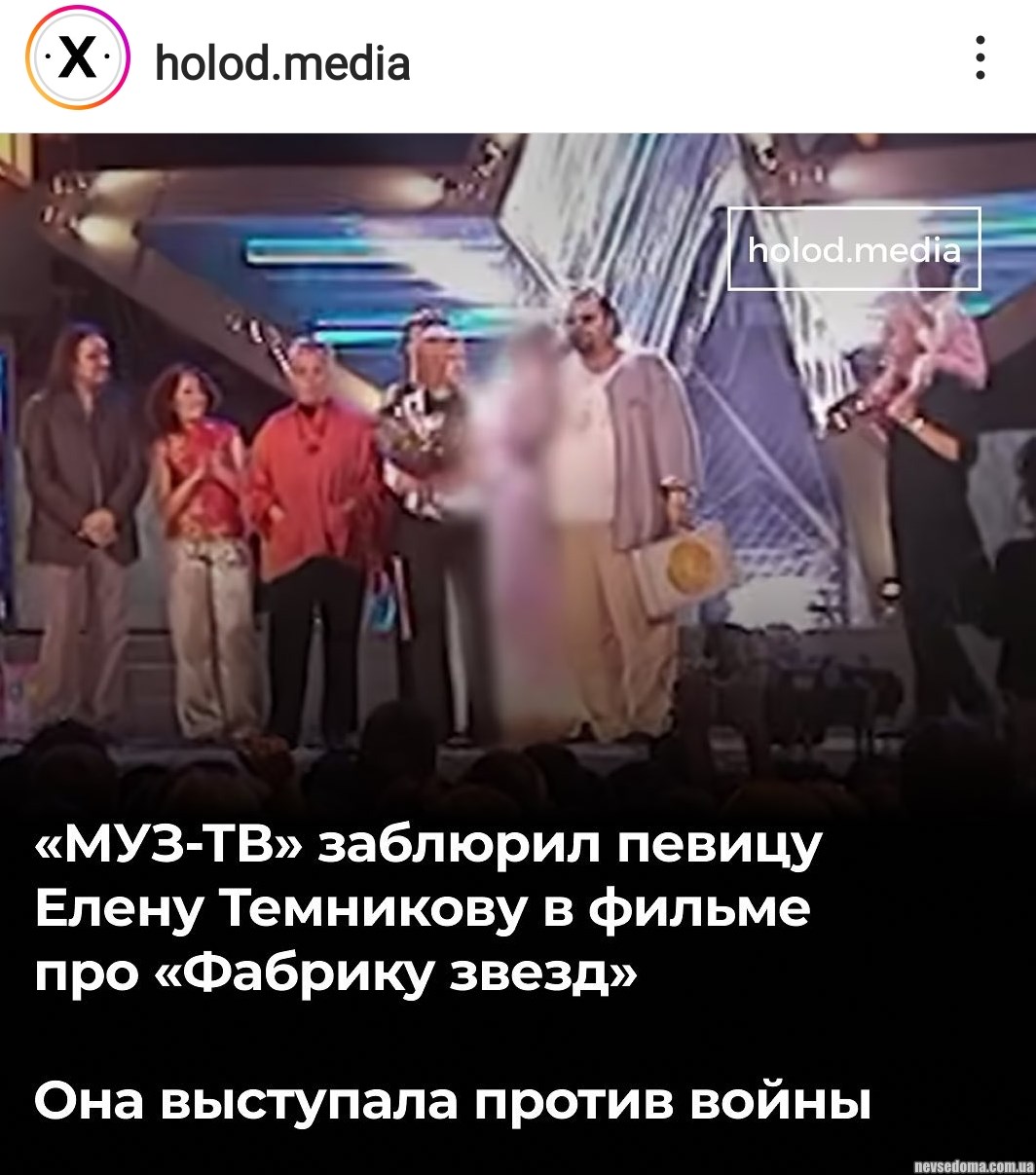 - «МУЗ - ТВ» заблюрил певицу Елену Темникову в фильме про «фабрику звезд». Она выступала против войны.