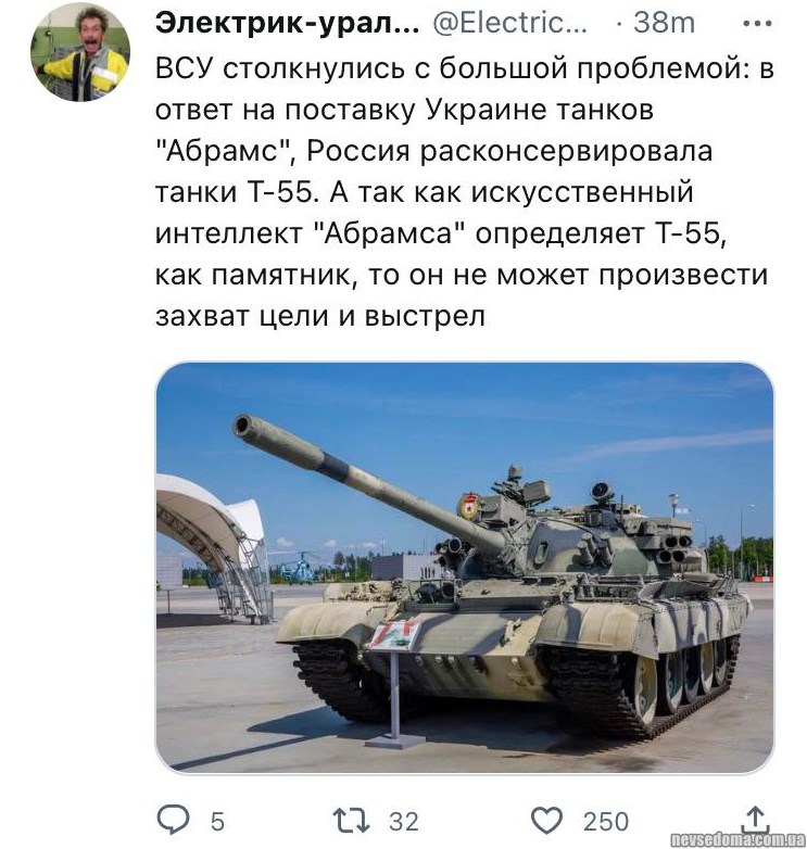 - Так как скусственный интеллект "Абрамса" определяет Т-55, как памятник, то он не может произвести захват цели и выстрел