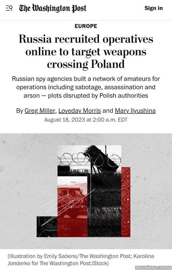- Российская военная разведка (ГРУ) создала в Польше агентурную сеть, задача которой — остановить или затруднить поставки оружия в Украину.