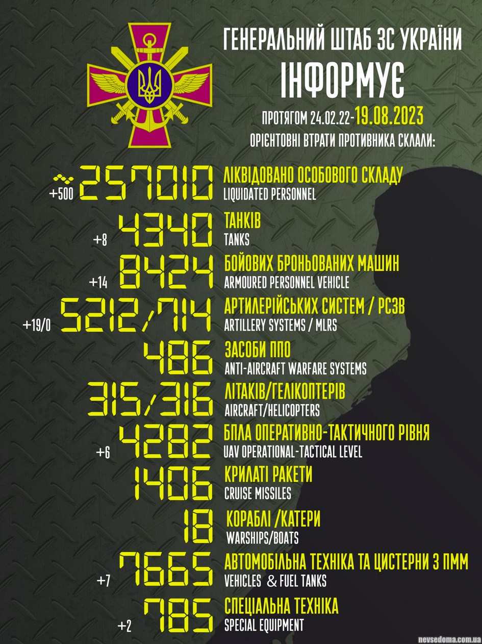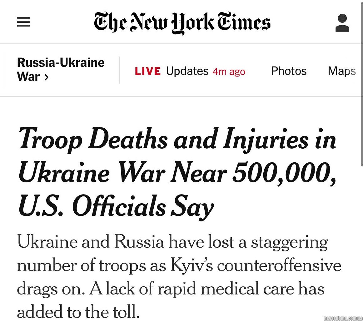 Общее количество погибших и раненых российских и украинских военнослужащих в Украине приближается к 500 000 человек.