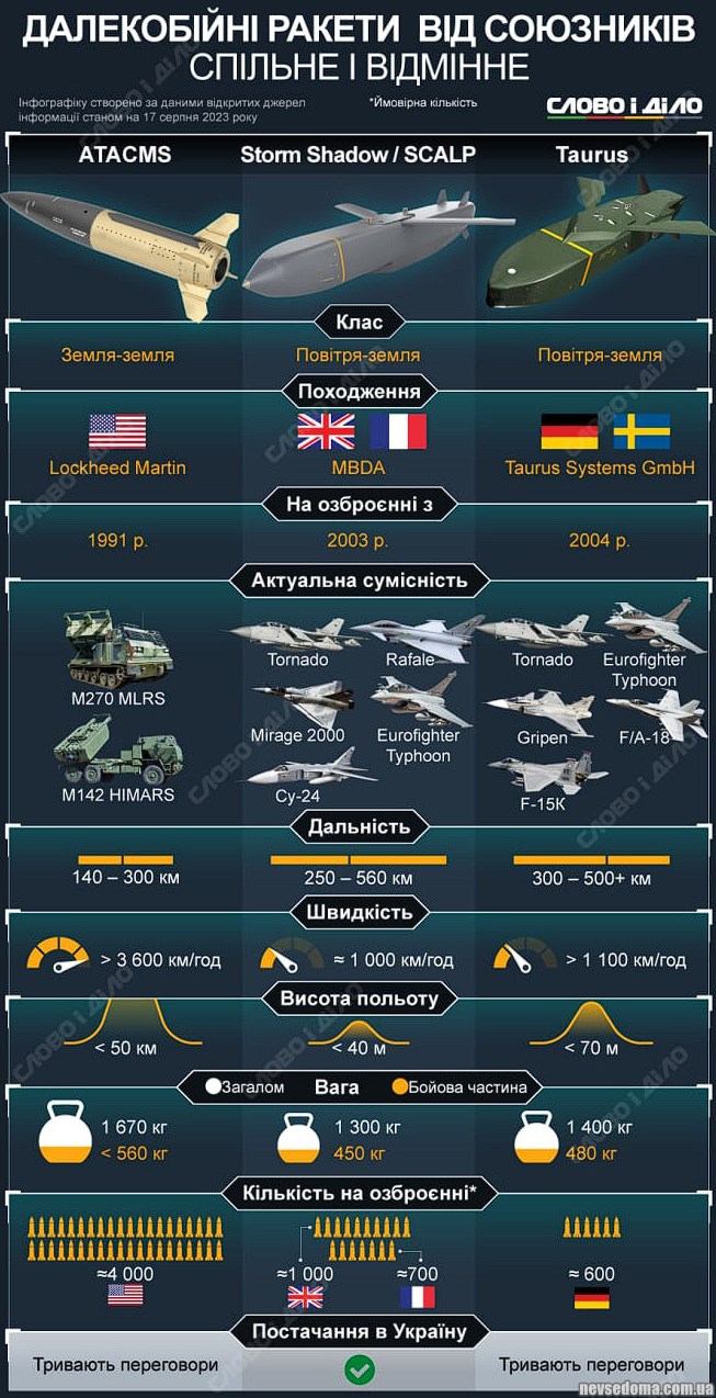 - Дальнобойные ракеты для Украины от союзников: общее и отличия.