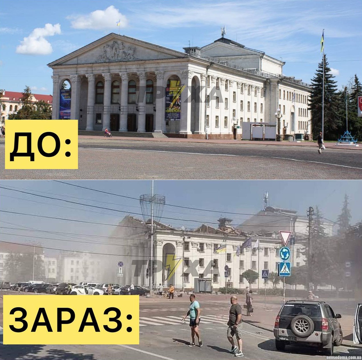 - Драмтеатр в Чернигове до и после террористического акта России.