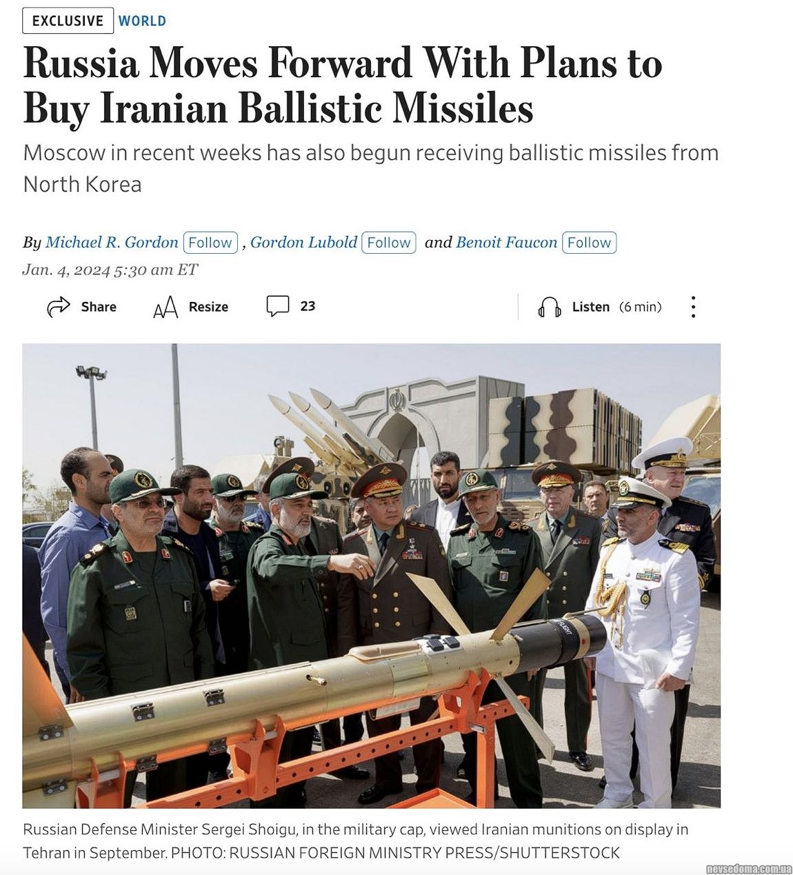 - Северная Корея начала передачу России баллистических ракет малой дальности, сообщает WSJ.