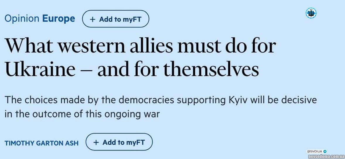 - Война в Украине продлится по меньшей мере до 2025 года, - FT.