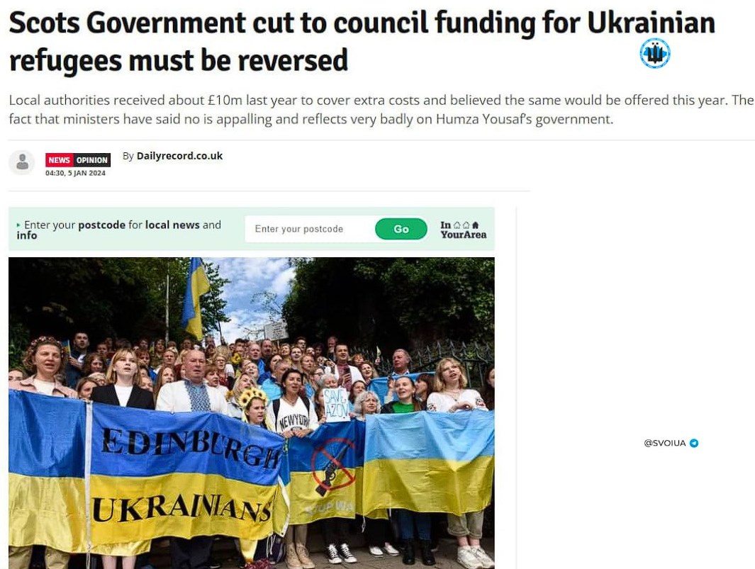 - Правительство Шотландии лишит украинских беженцев выплат на жилье, — Daily Record.