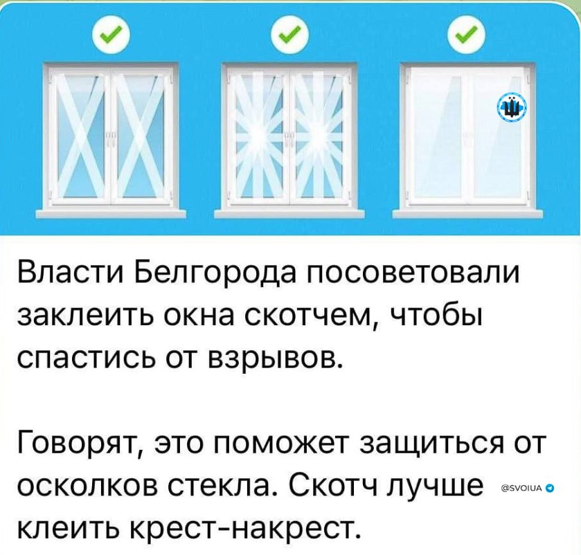 - В Белгороде местных жителей призывают заклеивать окна скотчем, чтобы спастись от взрывов