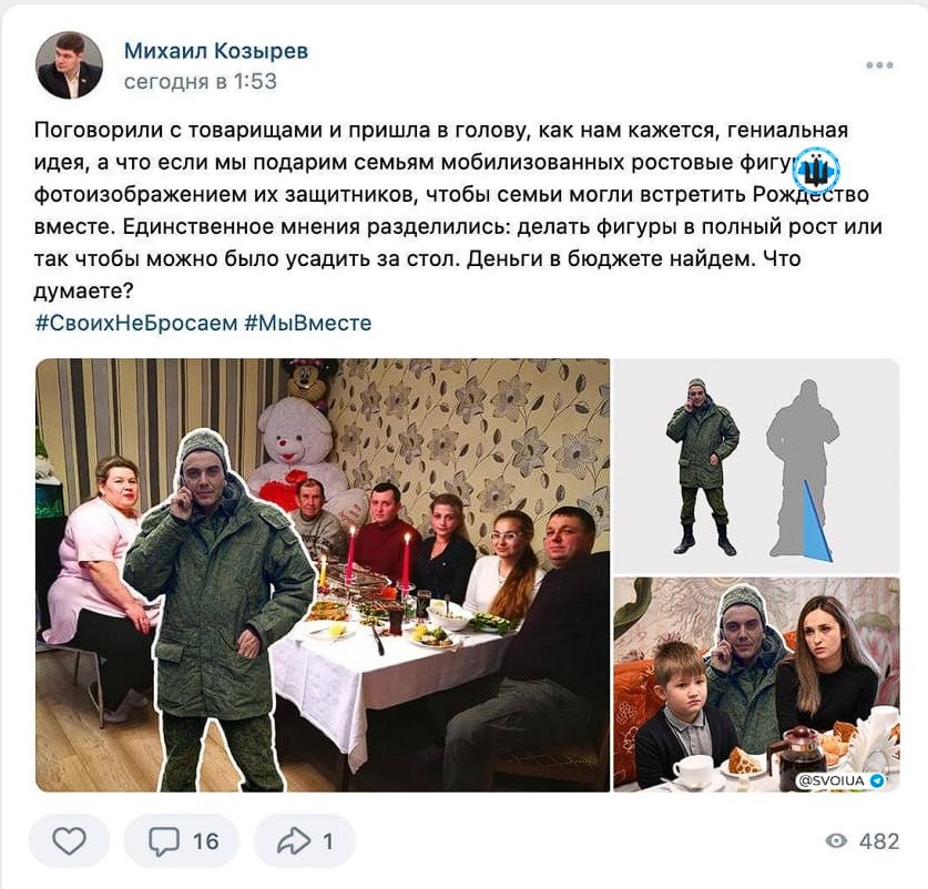 - Российские депутаты предложили подарить семьям мобилизованных картонные ростовые фигуры с изображением их чмобиков