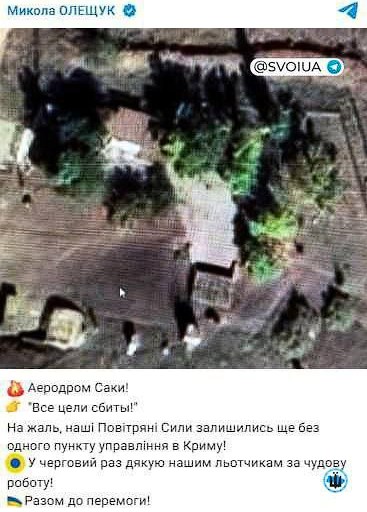 - 🔥Воздушные силы поразили аэродром Саки в Крыму, — командующий Воздушными силами ВСУ Николай Олещук.