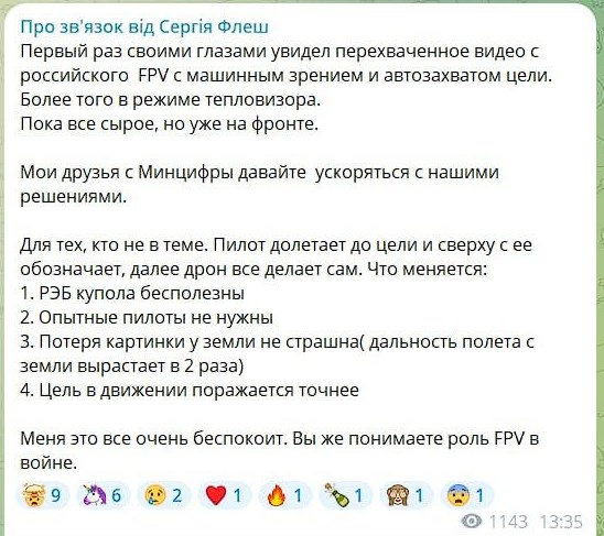 - На фронте появились российские FPV-дроны с машинным зрением и автоматическим обнаружением цели, а также тепловизором, сообщает украинский источник.