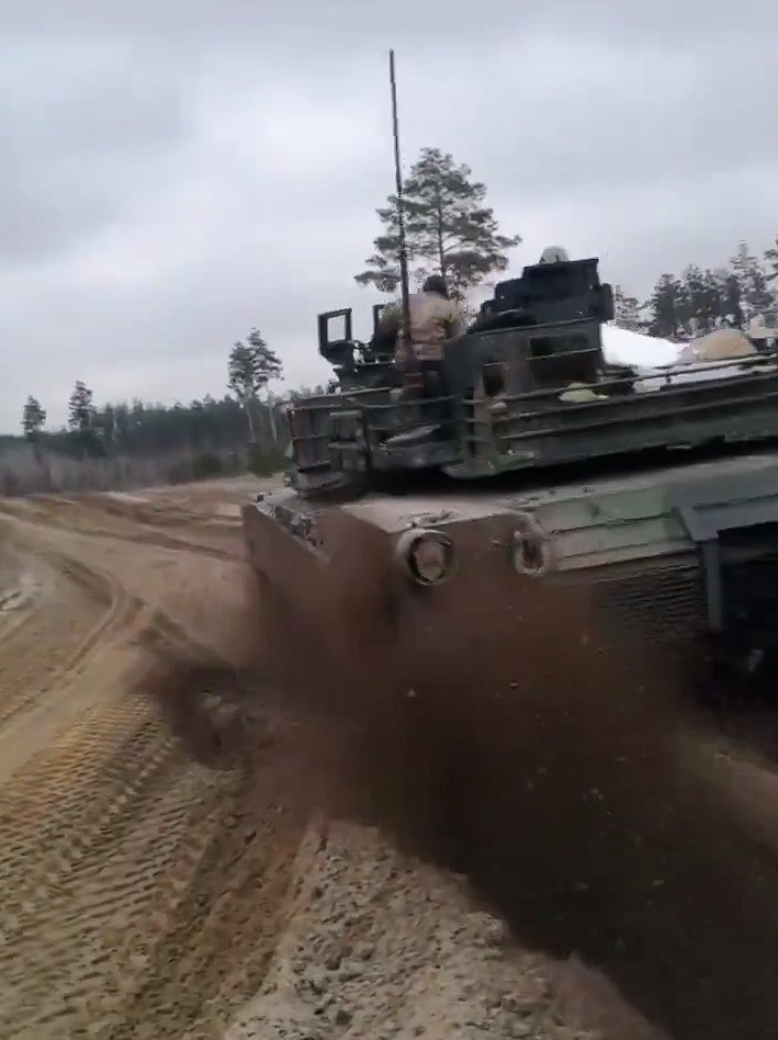 - Первые кадры поставленного американцами танка Abrams M1A1SA в Украине.