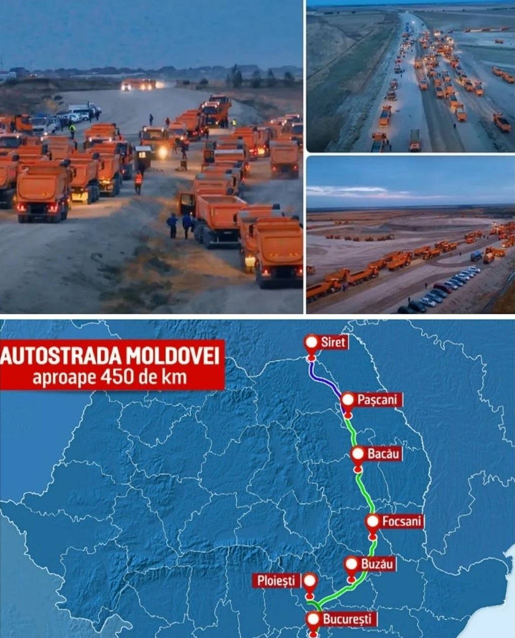 Румынские СМИ сообщают, что около 3000 рабочих и сотни автомобилей работают круглосуточно, 7 дней в неделю, чтобы продолжить строительство автомагистрали от Бухареста до границы с Украиной.