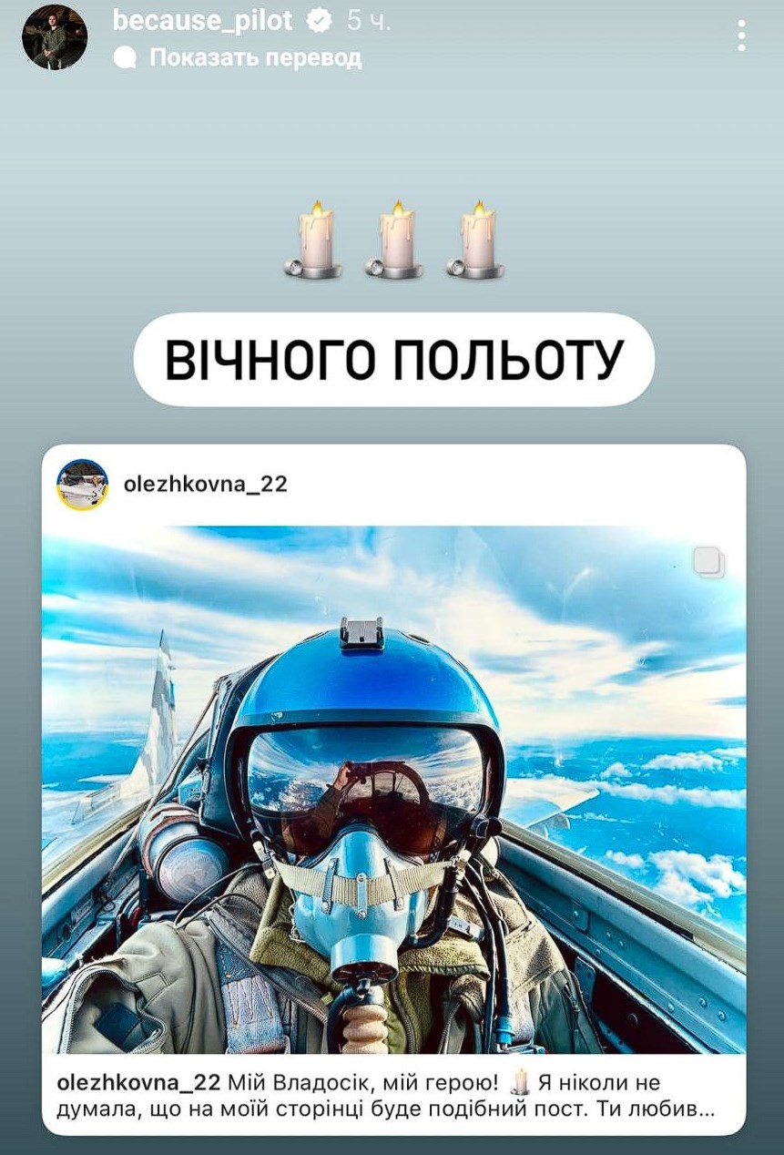 - Сообщается, что 23-летний украинский пилот МиГ-29 с позывным "Голубой шлем" погиб во время недавнего полета.