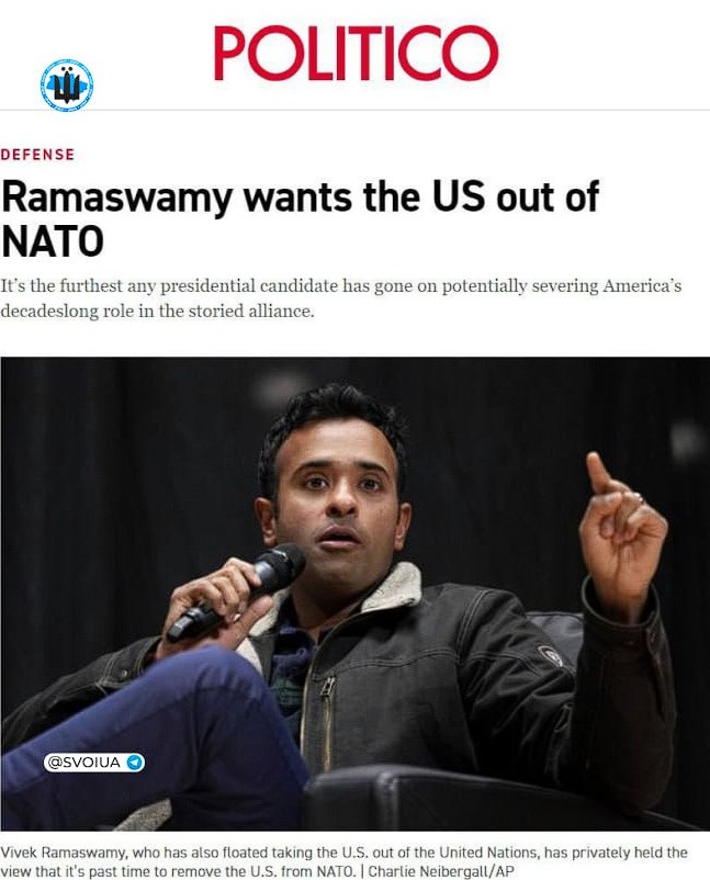 - 🤡 США покинут НАТО в случае моей победы на выборах, - кандидат от Республиканской партии Вивек Рамасвам.