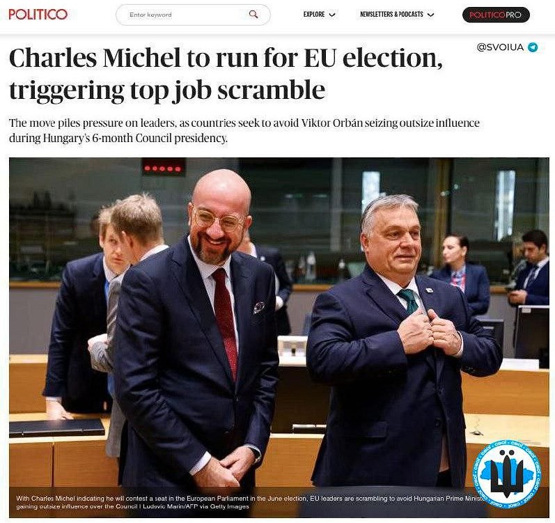 В случае отставки Шарля Мишеля в июле, возможно, что Виктор Орбан, премьер-министр Венгрии, займет его место как президент Евросовета, учитывая, что Венгрия председательствует в Совете ЕС с июля 2024 года по декабрь.