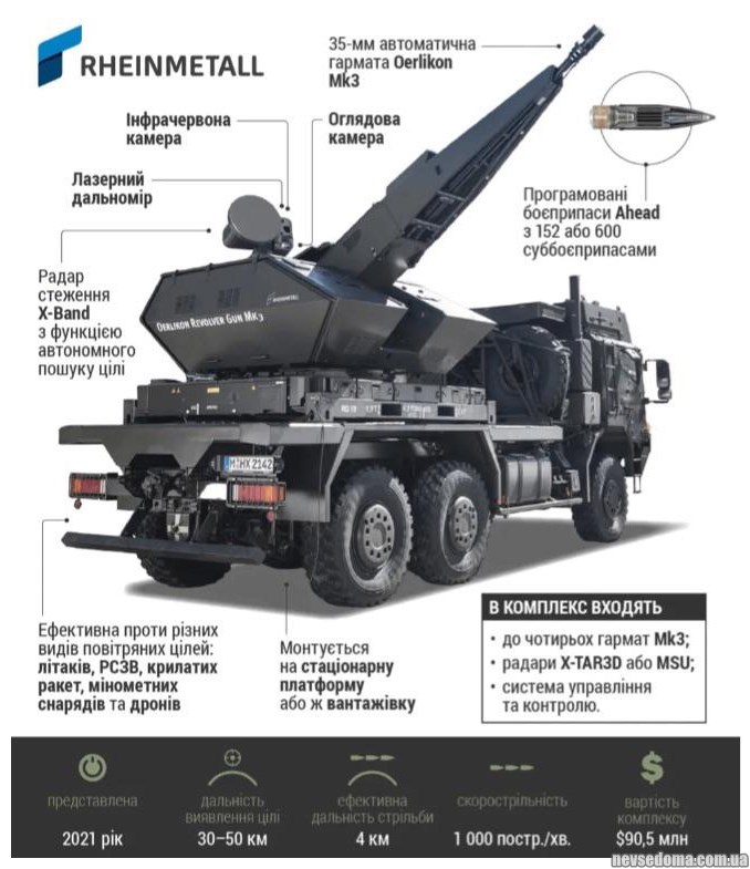 - Украина получила от Германии новейшую (2021 год) ЗРК SKYNEX, таким образом Украина становится единственным оператором этого оружия на данный момент в мире.