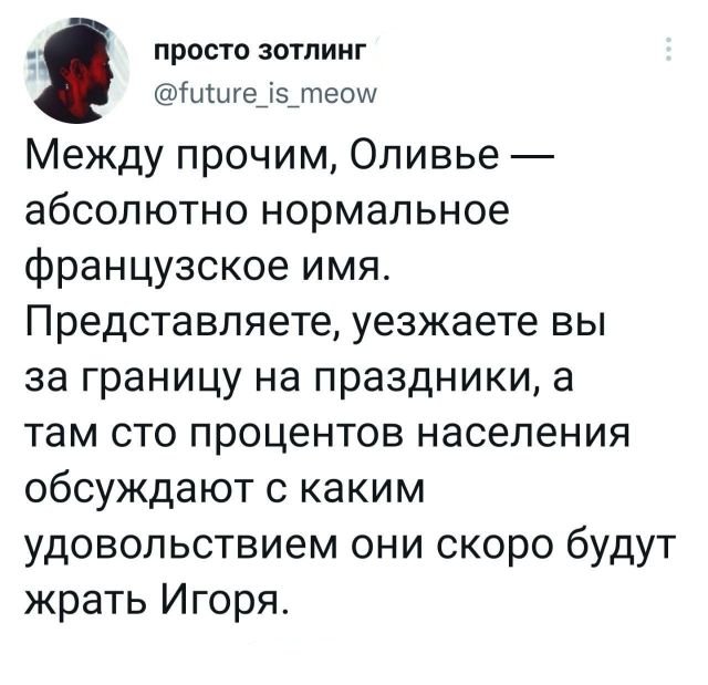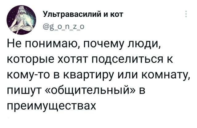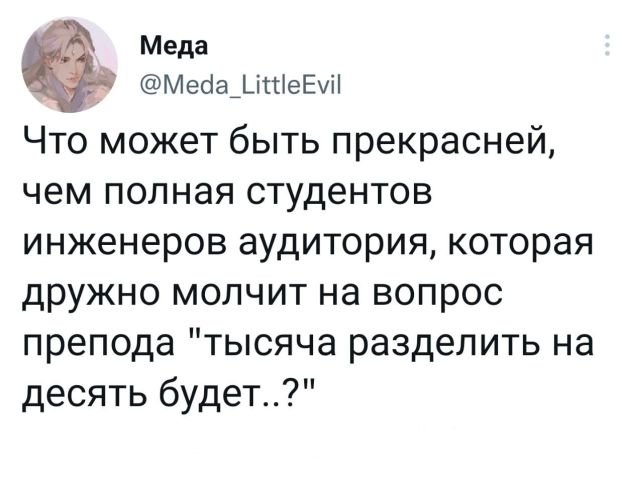 Подборка забавных твитов обо всем. Выпуск 545 Категория: Подборка забавных твитов обо всем, PEGI 16 7 декабря 2022 Предыдущая страница 1 2 Следующая страница Предыдущая подборка +1 интернет, твиты, короткие сообщения, прикол, мысли