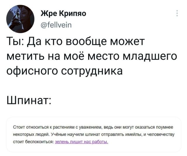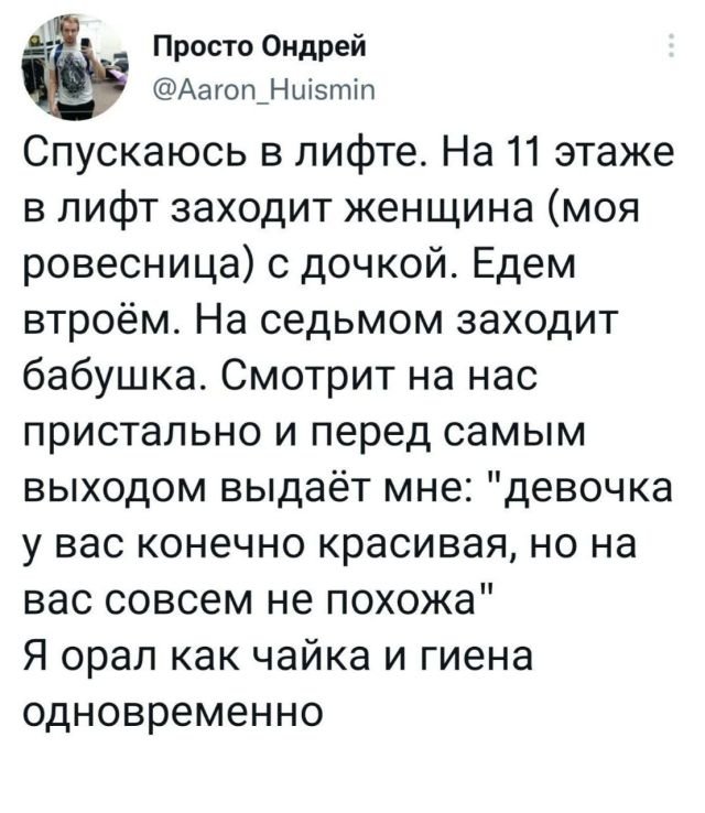 Подборка забавных твитов обо всем. Выпуск 560 Категория: Подборка забавных твитов обо всем, PEGI 16 2 февраля 2023 Предыдущая страница 1 2 Следующая страница Предыдущая подборка +4 интернет, твиты, короткие сообщения, прикол, мысли