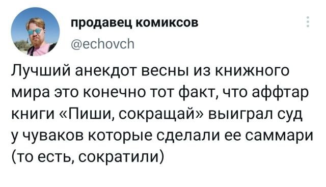Подборка забавных твитов обо всем. Выпуск 571 Категория: Подборка забавных твитов обо всем, PEGI 16 27 марта 2023 2 Предыдущая страница 1 2 Следующая страница Предыдущая подборка +5 интернет, твиты, короткие сообщения, прикол, мысли