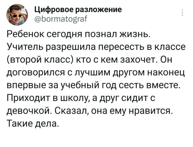 Подборка забавных твитов обо всем. Выпуск 579 Категория: Подборка забавных твитов обо всем, PEGI 16 7 мая 2023 Предыдущая страница 1 2 3 4 5 6 Следующая страница Предыдущая подборка +4 интернет, твиты, короткие сообщения, прикол, мысли