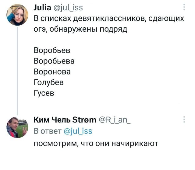 Подборка забавных твитов обо всем. Выпуск 586 Категория: Подборка забавных твитов обо всем, PEGI 16 17 июня 2023 1 Предыдущая страница 1 2 Следующая страница Предыдущая подборка +1 интернет, твиты, короткие сообщения, прикол, мысли
