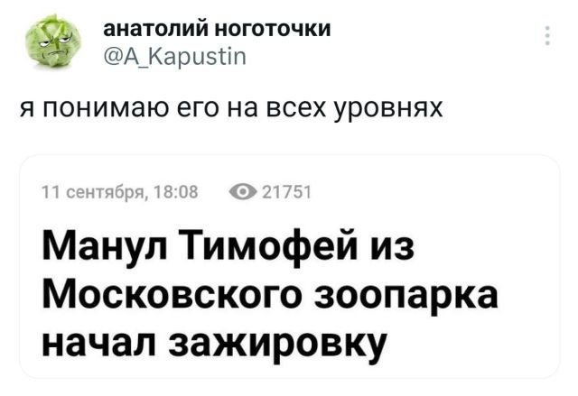 Подборка забавных твитов обо всем. Выпуск 608 Категория: Подборка забавных твитов обо всем, PEGI 16 22 сентября 2023 Предыдущая страница 1 2 Следующая страница Предыдущая подборка +3 интернет, твиты, короткие сообщения, прикол, мысли