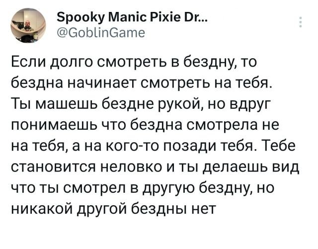 Подборка забавных твитов обо всем. Выпуск 644 Категория: Подборка забавных твитов обо всем, PEGI 16 31 декабря 2023 Предыдущая страница 1 2 Следующая страница Предыдущая подборка +5 интернет, твиты, короткие сообщения, прикол, мысли