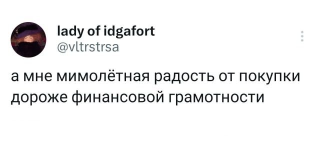 Подборка забавных твитов обо всем. Выпуск 646 Категория: Подборка забавных твитов обо всем, PEGI 16 19 января 2024 Предыдущая страница 1 2 Следующая страница Предыдущая подборка +4 интернет, твиты, короткие сообщения, прикол, мысли