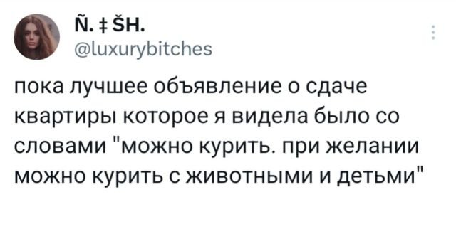 Подборка забавных твитов обо всем. Выпуск 661 Категория: Подборка забавных твитов обо всем, PEGI 16 29 февраля 2024 Предыдущая страница 1 2 Следующая страница Предыдущая подборка +4 интернет, твиты, короткие сообщения, прикол, мысли
