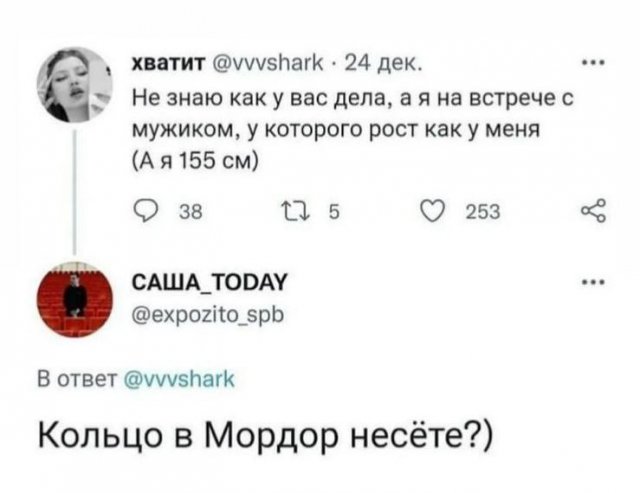 Лучшие шутки и мемы из Сети. Выпуск 497 Категория: Лучшие шутки и мемы из Сети, PEGI 16 31 мая 2023 Предыдущая страница 1 2 3 4 Следующая страница Предыдущая подборка +7 подборка, мемы, шутки, советы