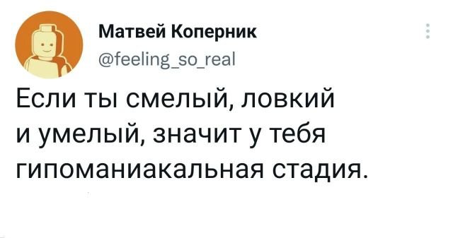 Подборка забавных твитов обо всем. Выпуск 549 Категория: Подборка забавных твитов обо всем, PEGI 16 19 декабря 2022 Предыдущая страница 1 2 3 Следующая страница Предыдущая подборка +2 интернет, твиты, короткие сообщения, прикол, мысли