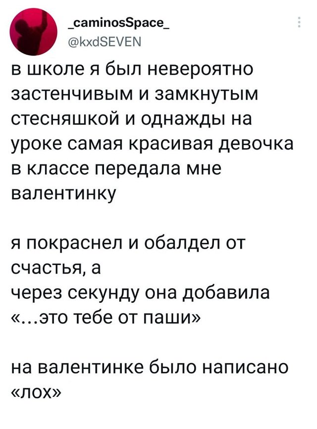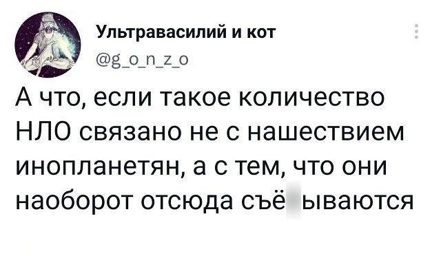 Подборка забавных твитов обо всем. Выпуск 562 Категория: Подборка забавных твитов обо всем, PEGI 16 18 февраля 2023 Предыдущая страница 1 2 3 4 Следующая страница Предыдущая подборка +3 интернет, твиты, короткие сообщения, прикол, мысли