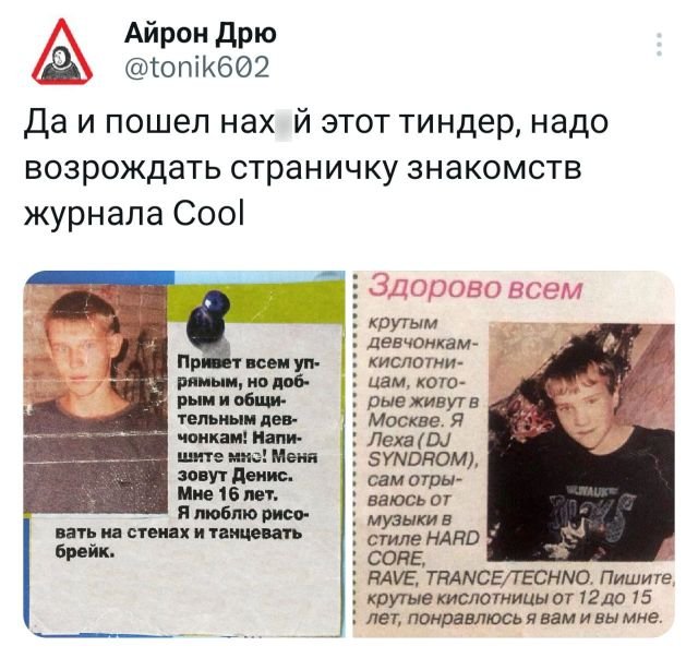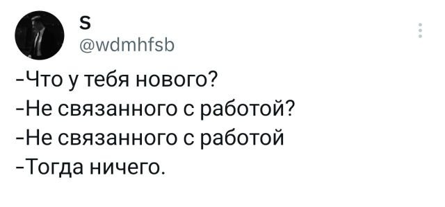 Подборка забавных твитов обо всем. Выпуск 580 Категория: Подборка забавных твитов обо всем, PEGI 16 12 мая 2023 Предыдущая страница 1 2 3 Следующая страница Предыдущая подборка +3 интернет, твиты, короткие сообщения, Приколы, мысли