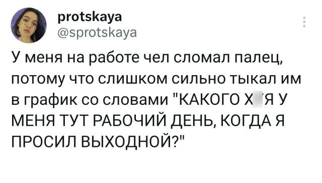 Подборка забавных твитов обо всем. Выпуск 582 Категория: Подборка забавных твитов обо всем, PEGI 16 23 мая 2023 Предыдущая страница 1 2 3 4 5 Следующая страница Предыдущая подборка +5 интернет, твиты, короткие сообщения, прикол, мысли