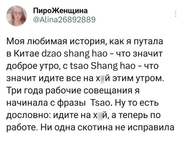 Подборка забавных твитов обо всем. Выпуск 606 Категория: Подборка забавных твитов обо всем, PEGI 16 14 сентября 2023 Предыдущая страница 1 2 3 Следующая страница Предыдущая подборка +4 интернет, твиты, короткие сообщения, прикол, мысли