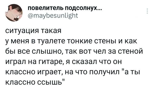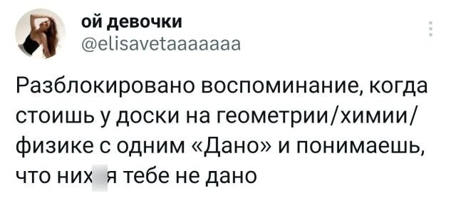 Подборка забавных твитов обо всем. Выпуск 643 Категория: Подборка забавных твитов обо всем, PEGI 16 12 января 2024 Предыдущая страница 1 2 3 Следующая страница Предыдущая подборка +3 интернет, твиты, короткие сообщения, прикол, мысли