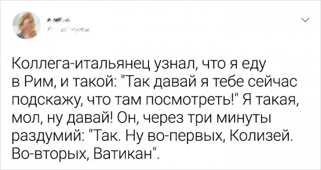 Подборка забавных твитов обо всем. Выпуск 687 Категория: Подборка забавных твитов обо всем, PEGI 16 16 мая 2024 Предыдущая страница 1 2 3 Следующая страница Предыдущая подборка +4 интернет, твиты, короткие сообщения, прикол, мысли