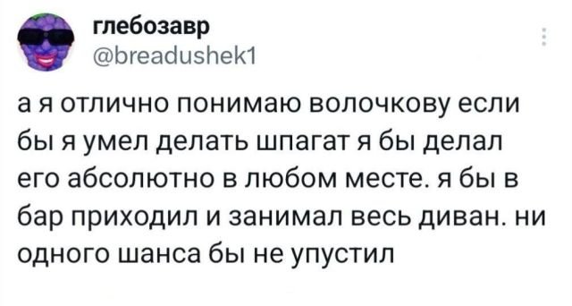 Подборка забавных твитов обо всем. Выпуск 688 Категория: Подборка забавных твитов обо всем, PEGI 16 22 мая 2024 Предыдущая страница 1 2 3 4 Следующая страница Предыдущая подборка +5 интернет, твиты, короткие сообщения, прикол, мысли